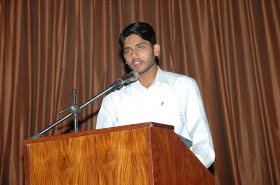 A bright student of the college is presenting speech during the seminar held at islamia degree college for boys kasur city.
